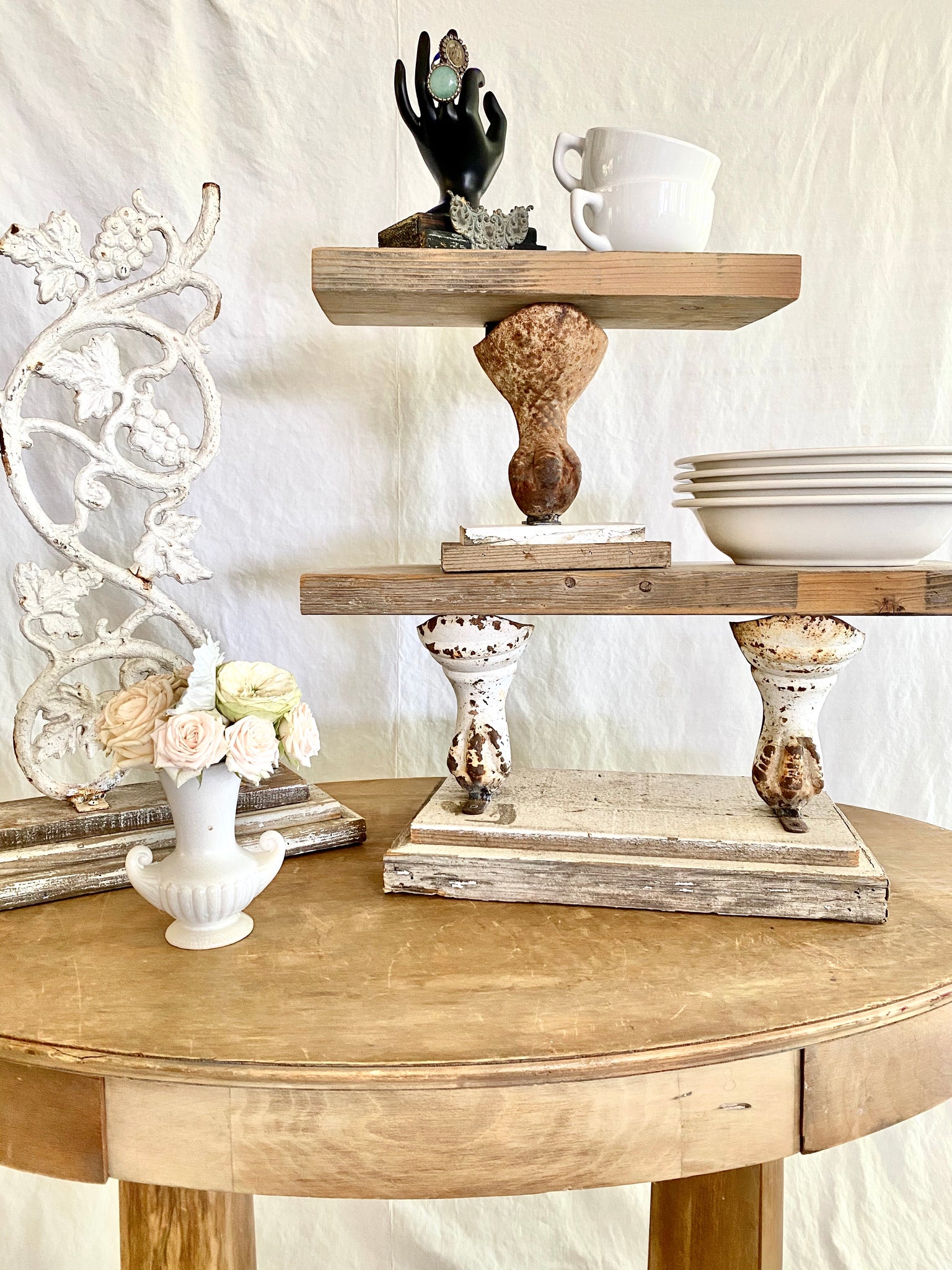 Vintage claw foot stand,1 ball claw foot with barn wood,bathtub feet