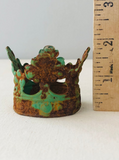 This beautiful aged patina metal crown with green throughout the crown, sits perfectly on top of any project. We hand age, each piece and hand make the crowns.
